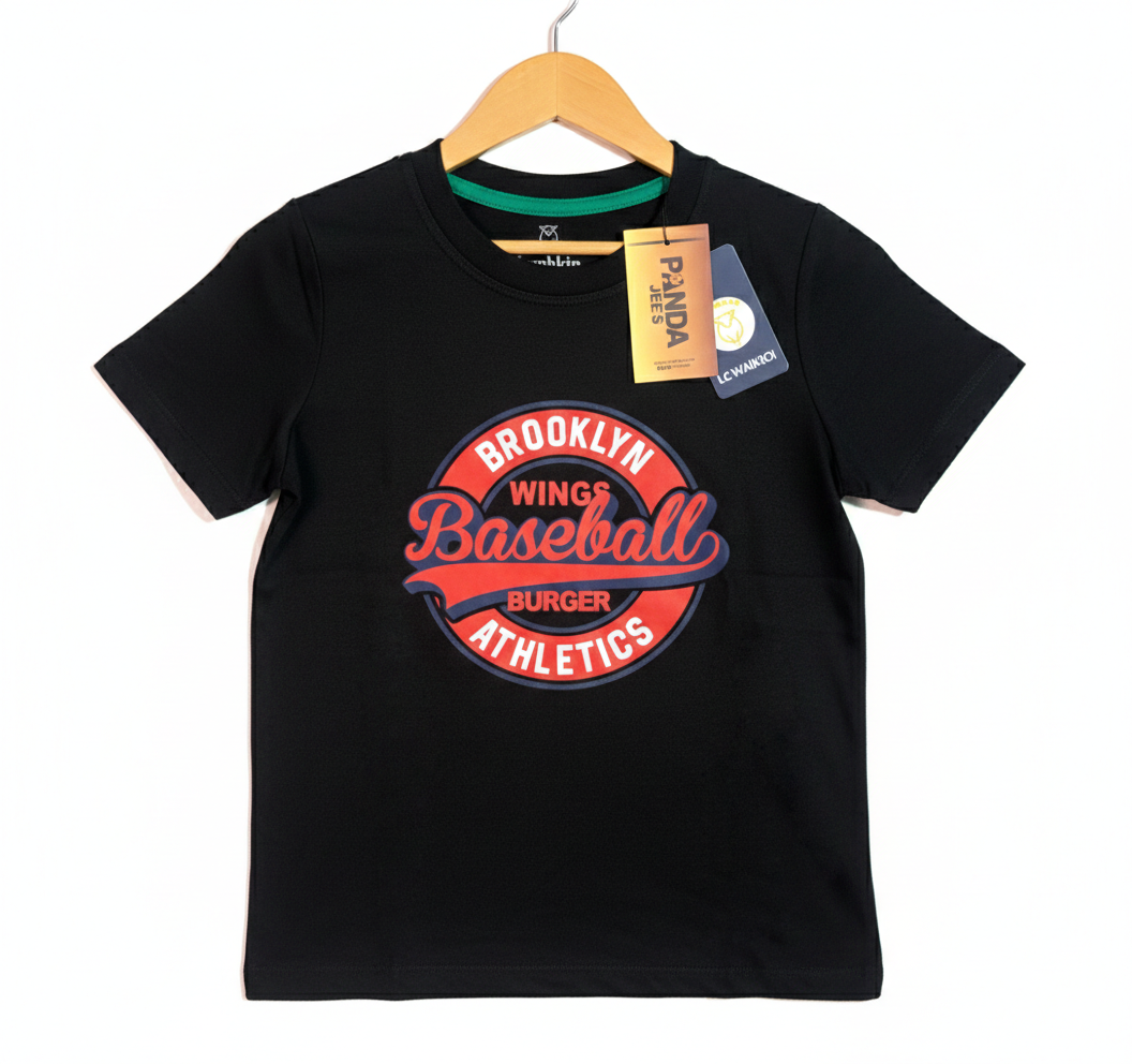 Add a playful pop to your little one’s wardrobe with our black ‘ Baseball ‘ printed t-shirt from our boys collection. Made from soft, breathable cotton, this tee combines comfort with fun, featuring a bold graphic print that brings cheerful energy to everyday outfits. Perfect for playdates or casual days out!..